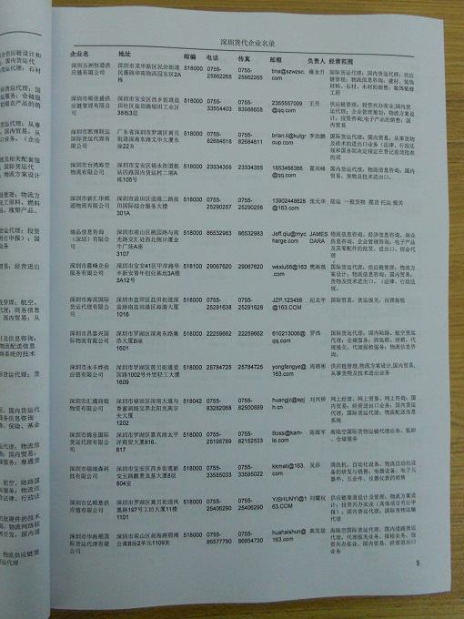 深圳貨運公司黃頁包括:企業(yè)名稱、負責(zé)人聯(lián)系方式、企業(yè)電話、傳真、Email、經(jīng)營范圍、地址、郵編等信息。