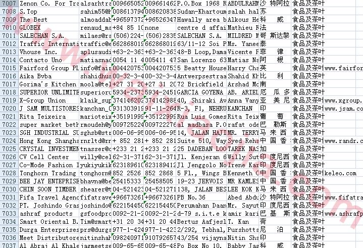 食品飲料茶葉采購商名單數據為Excel格式,信息可任意修改、復制、打印、導出及導入到傳真、郵件群發(fā)等軟件中,無任何限制。