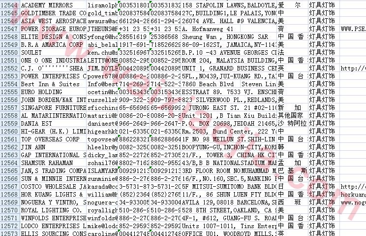 燈具燈飾采購商名單數(shù)據(jù)為Excel格式,信息可任意修改、復(fù)制、打印、導(dǎo)出及導(dǎo)入到傳真、郵件群發(fā)等軟件中,無任何限制。