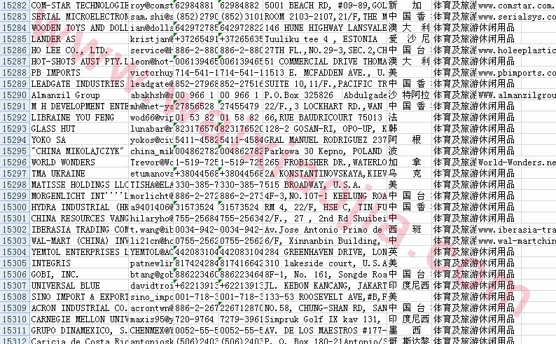 體育及旅游休閑用品采購商名單數(shù)據(jù)為Excel格式,信息可任意修改、復制、打印、導出及導入到傳真、郵件群發(fā)等軟件中,無任何限制。