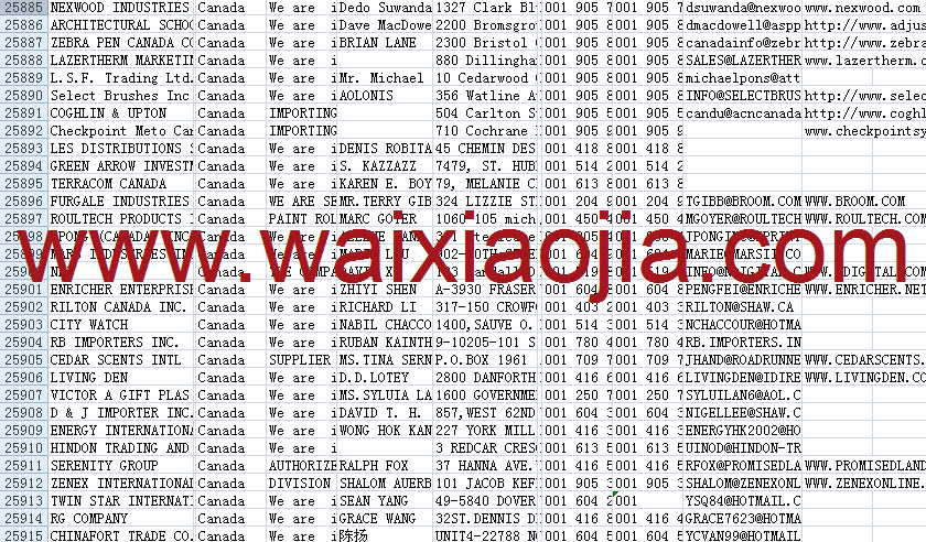 加拿大采購商名單數(shù)據(jù)為Excel格式,信息可任意修改、復(fù)制、打印、導(dǎo)出及導(dǎo)入到傳真、郵件群發(fā)等軟件中,無任何限制。