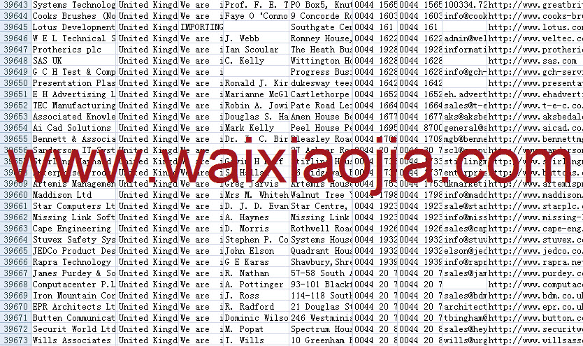 英國(guó)采購(gòu)商名單數(shù)據(jù)為Excel格式,信息可任意修改、復(fù)制、打印、導(dǎo)出及導(dǎo)入到傳真、郵件群發(fā)等軟件中,無任何限制。