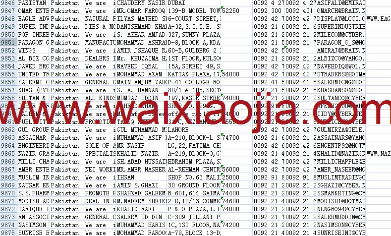 巴基斯坦采購(gòu)商黃頁(yè)包括:企業(yè)名稱、電子郵箱、聯(lián)系電話、傳真、聯(lián)系地址、聯(lián)系人、郵編等信息。
