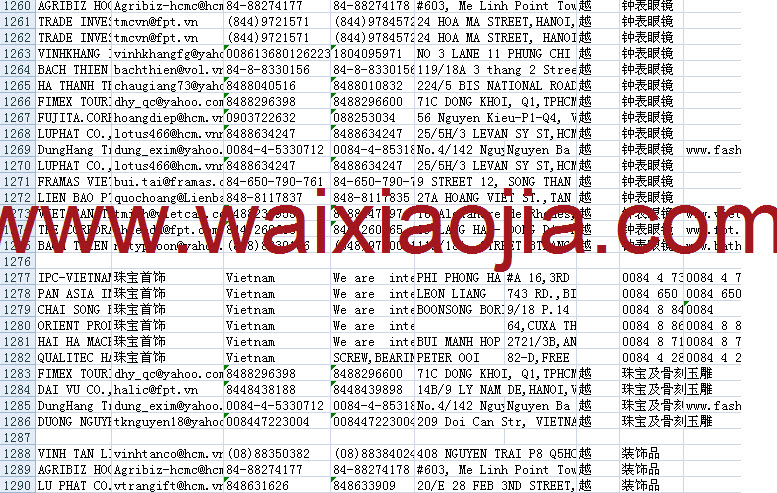 越南采購商名單數(shù)據(jù)為Excel格式,信息可任意修改、復制、打印、導出及導入到傳真、郵件群發(fā)等軟件中,無任何限制。