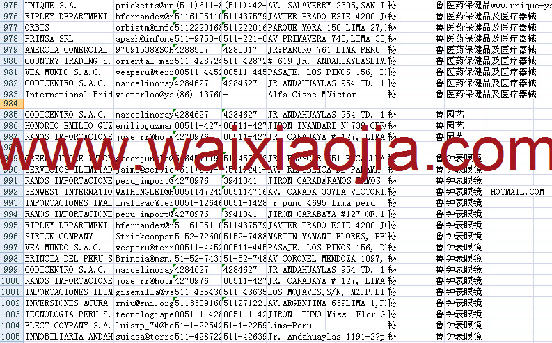 秘魯采購商公司黃頁共1050記錄,價(jià)格:300元